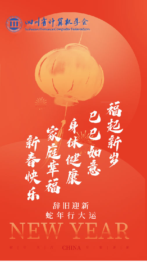 值此新春佳节来临之际,四川省计算机学会向大家致以美好的新春祝福,感谢长期支持、关心学会的各位会员、理事及学会领导、各界朋友,祝大家福起新岁,巳巳如意,身体健康,家庭幸福,新春快乐!